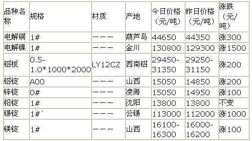 7月17日济南有色金属市场行情(铜镍铅锌锡镁铝)
