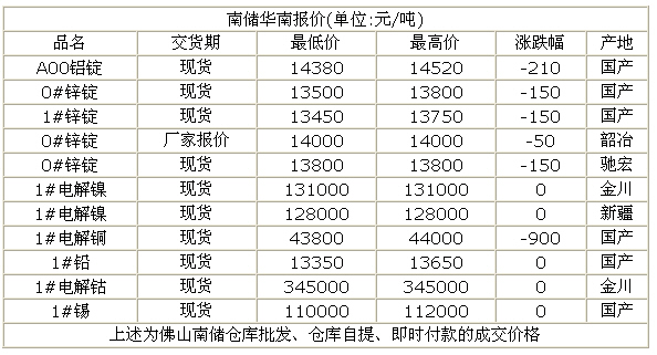 7月17日沈阳有色金属市场行情(铜镍铅锌锡镁铝)