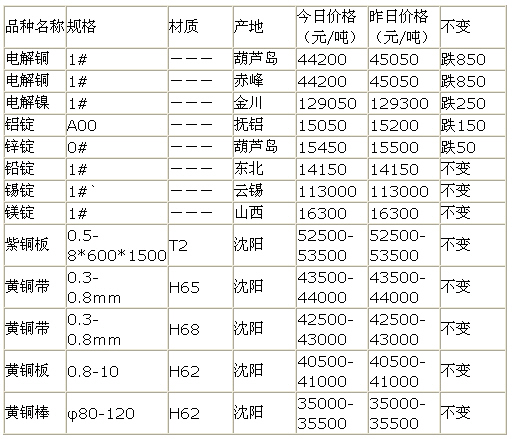 7月17日广东有色金属市场行情(铜镍锌锡铝钴)