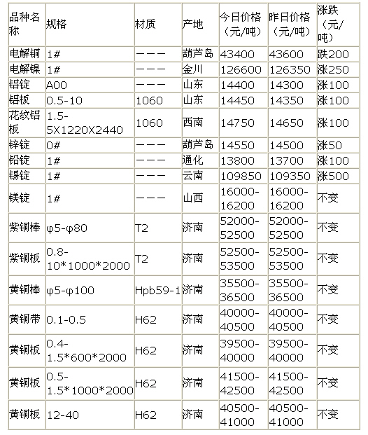 7月21日济南有色金属市场行情(铜镍铅锌锡镁铝)