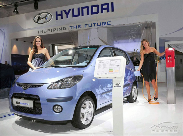 现代汽车在刚刚过去的德国法兰克福国际车展上面出展了自己的环保产品--现代i10 Electric。这一辆零排放的交通工具将会在明年年初的时候,于韩国国内市场进行预量产。