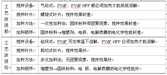 从如下表所示的四个方面对浆料制备工艺进行了改进,比较改进前后浆料、膜的性能,以找到其最佳工艺条件。