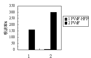 二元共聚物PVdF-HFP由于高分子链团的形成,增塑剂萃取后电解质膜内微孔、孔径分布不均匀,导致以PVdF-HFP为骨架材料时,电解质膜吸液率低、电池性能差于均聚物PVdF为骨架材料的聚合物锂离子电池;且PVdF-HFP则无法在室温下溶解,工艺操作性也不如PVdF。
