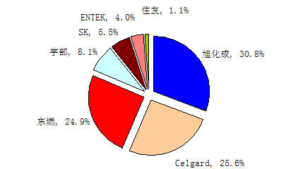 国内中高端市场,主要由东燃、旭化成、celgard、宇部等公司垄断。其中日本宇部隔膜产量的70%集中在中国国内销售。中国每年进口锂离子电池隔膜在6000万平方米以上,并以12%的速度递增。