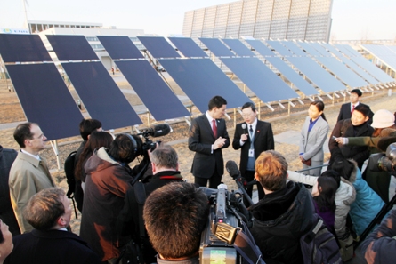 英国外交大臣大卫•米利班德(David Miliband)一行,于3月15日下午到达河北廊坊新奥集团进行访问,深入了解了新奥太阳能电池生产情况,并就清洁能源技术研究等问题与新奥集团进行了讨论。