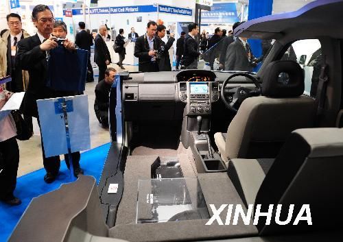3月3日,在日本东京举办的第六届国际氢燃料电池展上,参观者观看一款利用氢燃料电池为动力的日产样车。