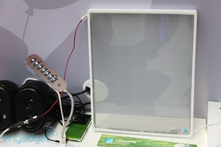 在2010年台北国际光电周上,台湾工业研究院与秦华企业展示了这款他们合作的新产品。这款玻璃中含有太阳能基板,太阳光照射进去时,会通过基板的扩散和反射作用最终将光集中在窗框内部的太阳能板上,从而进行发电。这款玻璃窗并不是完全透明的,稍微有些发白,并有不同透明程度的款式可供选择。发白程度越深,光越不容易透过,发电效果就越好。图中大小的玻璃,大约可以提供2瓦的电力,可以驱动小风扇或是小灯泡。虽然这款产品还没有明确的上市日期,但是其发展前景非常广阔。