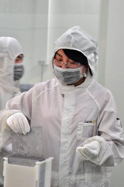 1月14日,工人在西安黄河光伏股份有限公司的太阳能电池、电池组件生产线上工作。