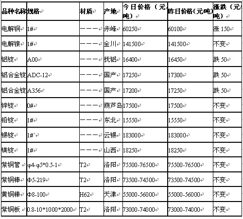 2011年11月1日沈阳有色金属市场行情