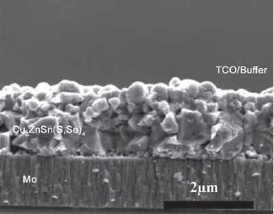 除了设备性能之外,价格波动问题(特别是铟),稀土稀缺性问题(例如碲),以及潜在的环境问题(如镉的毒性问题),都已引起一些人顾虑碲化镉和铜铟镓硒。最先找到的下一代薄膜光伏材料,就是低成本季铜锌锡硫(CZTS:quaternary copper-zinc-tin-sulfide)和铜锌锡硫族(CZTSSe:copper-zinc-tin-chalcogenide)。值得注意的是,这些材料包含地壳中丰富的天然元素,毒性非常低(见《丰富的无机材料可取代铂用于染料敏化太阳能电池》)。
