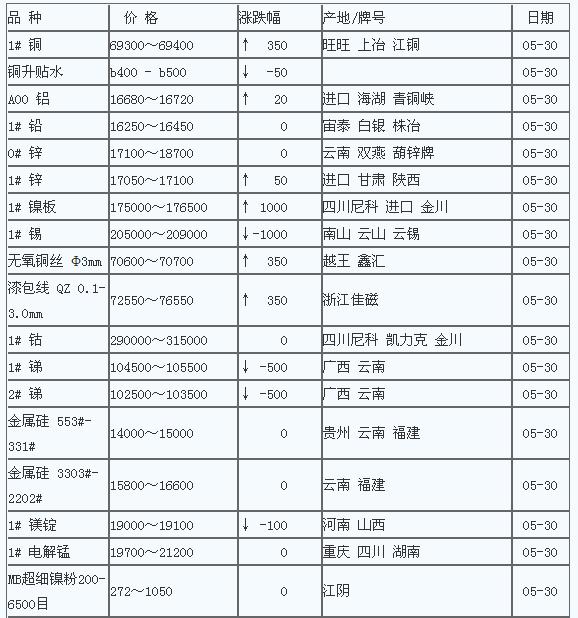 上一篇: 2011年5月27日长江有色金属现货下午快讯(铜铝铅锌锡镍)