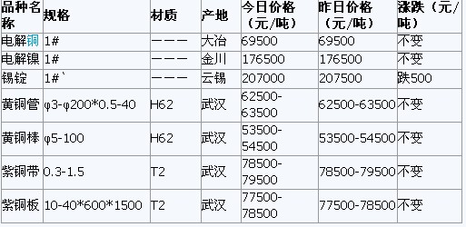 2011年5月31日武汉有色金属市场行情
