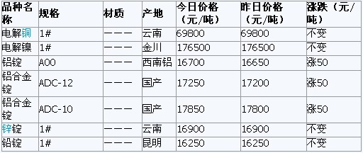 上一篇: 2011年5月31日西安有色金属市场行情