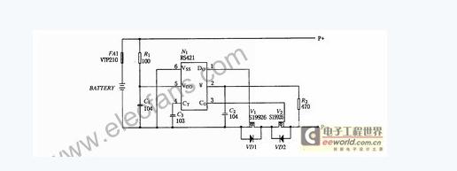锂离子电池保护电路包括过度充电保护、过电流/ 短路保护和过放电保护等,该电路就是要确保这样的过度充电及放电状态时的安全,并防止特性劣化。它主要由集成保护电路IC、贴片电阻、贴片电容、场效应管(MOSFET) 、有的还有热敏电阻(NTC) 、识别电阻( ID) 、保险丝( FUSE) 等构成。其电路图如图1所示。