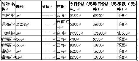 2011年6月1日昆明有色金属市场行情