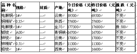 上一篇: 2011年6月1日武汉有色金属市场行情