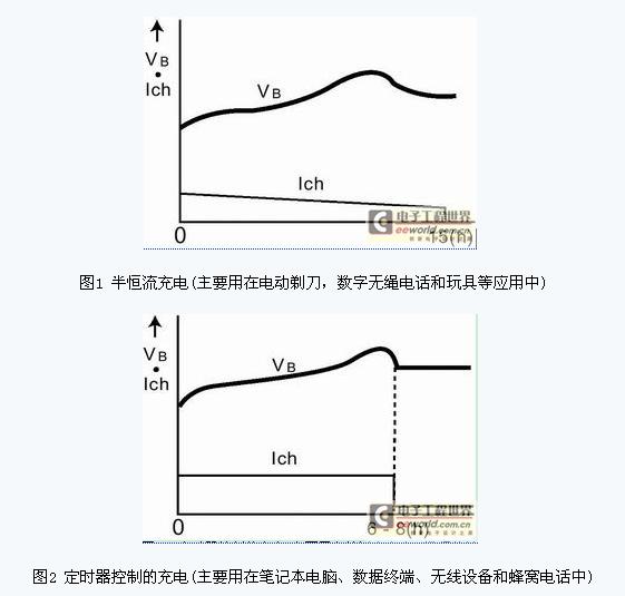 新的NiMH电池在充电周期内过早地出现不可靠的峰值,这会导致充电器过早结束充电。此外,用-△V检测充电结束能保护过充电,过充电本身又在电池失效前限制充电/放电的次数,在所有条件(新或旧,热或冷,全部或部分放电)下似乎没有可用的-dV/dt算法能使NiMH电池充电更有效。基于此原因,不能用NiCd充电器为NiMH电池充电,除非它是用dT/dt方法终止充电。因为NiMH电池不能吸收过充电,所以,涓流充电必须比NiCd小(0.05C左右)。