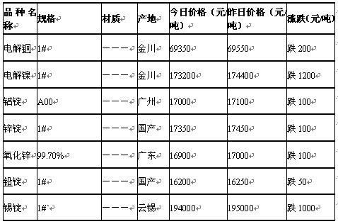 上一篇: 2011年6月16日无锡有色金属市场行情