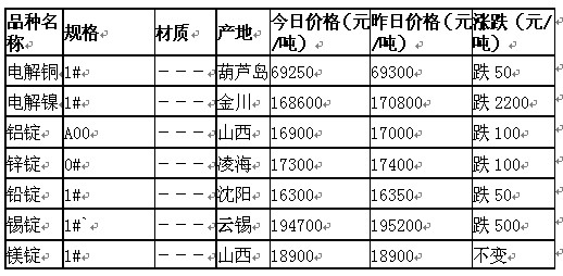 上一篇: 2011年6月17日广东有色现货报价(南储(铜铝铅锌镍钴镉锰镁铋)