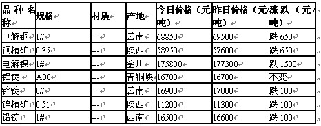 2011年6月2日西安有色金属市场行情