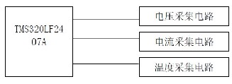 系统的硬件设计主要包括电压采集电路、电流采集电路和温度采集电路设计。采集电路以TMS320LF2407A 为CPU。TMS320LF2407A 是TI 公司专为实时控制而设计的高性能16 位定点DSP 器件,指令周期为33ns,其内部集成了前端采样A/D 转换器和后端PWM 输出硬件,在满足系统实时性要求的同时可简化硬件电路设计。