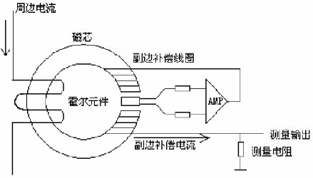 霍尔电流传感器的原理图如3-2。被测电流In流过导体产生的磁场,由通过霍尔元件输出信号控制的补偿电流Im流过次级线圈产生的磁场补偿,当原边与副边的磁场达到平衡时其补偿电流Im即可精确反映原边电流In值。