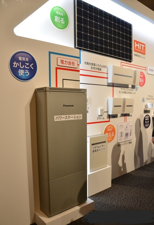 松下公司2012年2月23日发布了组合使用光伏发电系统和蓄电系统,可控制家庭内电力的“住宅创蓄联动系统”。主要针对新建住宅,从今年3月21日开始接受订货。松下专务董事、环境方案(Eco Solutions)公司社长长荣周作表示:“2012年度的销售目标是1500套。蓄电池业务整体力争实现70亿日元的销售额。”