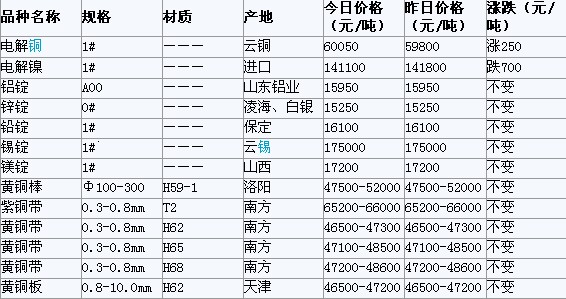 上一篇: 2012年2月29日西安有色金属市场行情