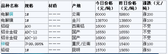 2012年3月13日重庆有色金属市场行情