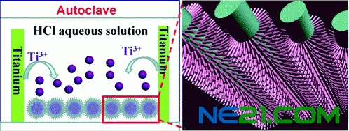 示意图中是碳纤维上的二氧化钛纳米棒阵列,采用“溶解培育”方法制作。