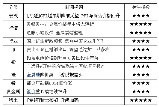行业方面,在印尼禁止镍矿出口消息后,赞比亚也开始禁止粗铜出口,各国保护资源的意识愈加强烈,在有色业“矿山吃肉”的现状下,资源是获取利润的重大保障,当务之急是,有色企业应延伸产业链,从单一采矿拓展到冶炼环节,从而应对各国禁止资源出口的政策.