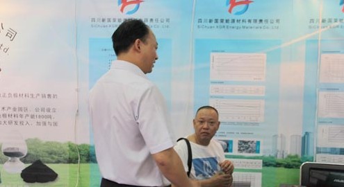 四川新国荣能源材料有限责任公司董事长蒋国荣在展厅指导工作