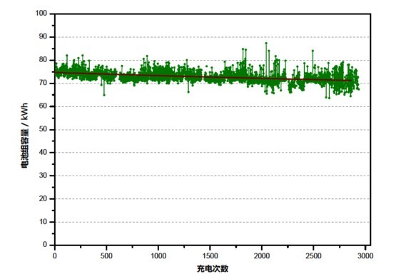 从图3可以看到,从2011年4月至今,电池组的充放循环次数达到近3,000次,其容量保持约在初始容量的97%,电池组的整体寿命预计将达到15,000次(容量下降到初始容量的80%),基本上可以满足电池组与车辆同寿命周期的预期。