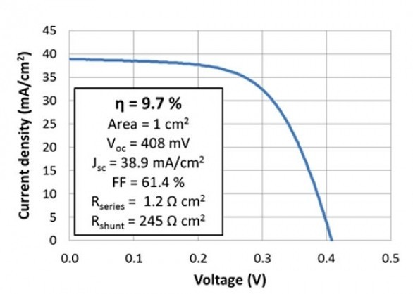 研究人员表示,生产该1x1cm2电池使用仅仅1µm厚度的多晶吸收层,典型的粒径为1µm左右。