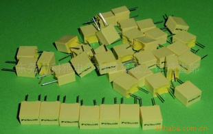 金属化聚酯膜作电介质叠层而成,导线采用镀锡铜包钢线单向引出,矩型阻燃塑料外壳和阻燃环氧树脂封装。具有体积小,重量轻,容量范围广,比率容量大、良好的自愈性,使用寿命长、适用于主要应用于旁路电路、隔直电路、耦合电路、计时电路、振荡电路、变频电路、滤波电路等,特别适用于显示器、电源、节能灯、程控交换机、音箱、音响功放、仪器仪表等。