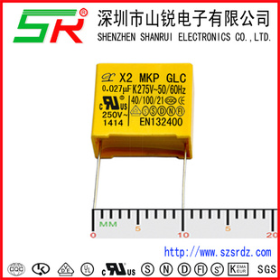 品牌 岱恩DAIN/天泰TC/TENTA/凯利Carli/塑容SR/HJC/UTX/星光电/双诚GLC/华伦/安规电容 型号 X2 275V 273K P=10mm