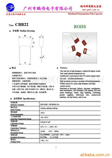 产品类型: 鹏伟电容 (ROHS) CBB22 (MPP) 特点与用途: 1.高频损耗小,适用于较大电流 2.内部温升小 3.适用于要求体积小,性能优异的彩电S校正电路 4.阻燃环氧树脂包封(UL94/V-0) 5.广泛用于高频、直流、交流和脉冲电路中 引用标准: GB 10190(IEC 60384-16) 气候类别: 40/085/21 额定电压: 250V、400V、630V 电容量范围: 0.01~10μF 电容量偏差: ±5%(J),±10%(K) 耐电压: 1.6UR (5s) 损耗角正切: ≤10×10-4( 1kHz,20℃) 绝缘电阻: ≥ 50 000MΩ (CR≤0.33μF) (20℃,1min) ≥ 15 000s (CR>0.33μF ) 专用于电子镇流器、电子变压器、霓虹灯变压器、LED灯饰、取暖灯、LED手电筒、电蚊拍、HID手电筒、HID汽车氙气大灯、频闪灯、舞台灯光、开关电源、电视机、空调、摩托车点火器、机顶盒、功放音响等电路上。欢迎来人来电洽谈。